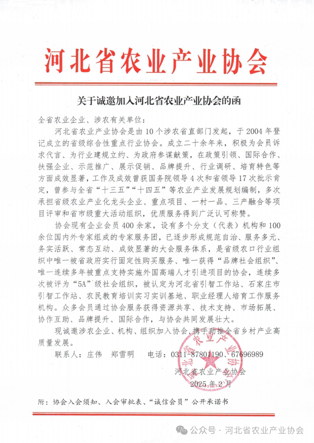 河北省农业产业协会是由10个涉农省直部门发起,于2004年登记成立的省级综合性重点行业协会。现诚邀涉农企业、机构、组织加入协会,携手助推全省乡村产业高质量发展。