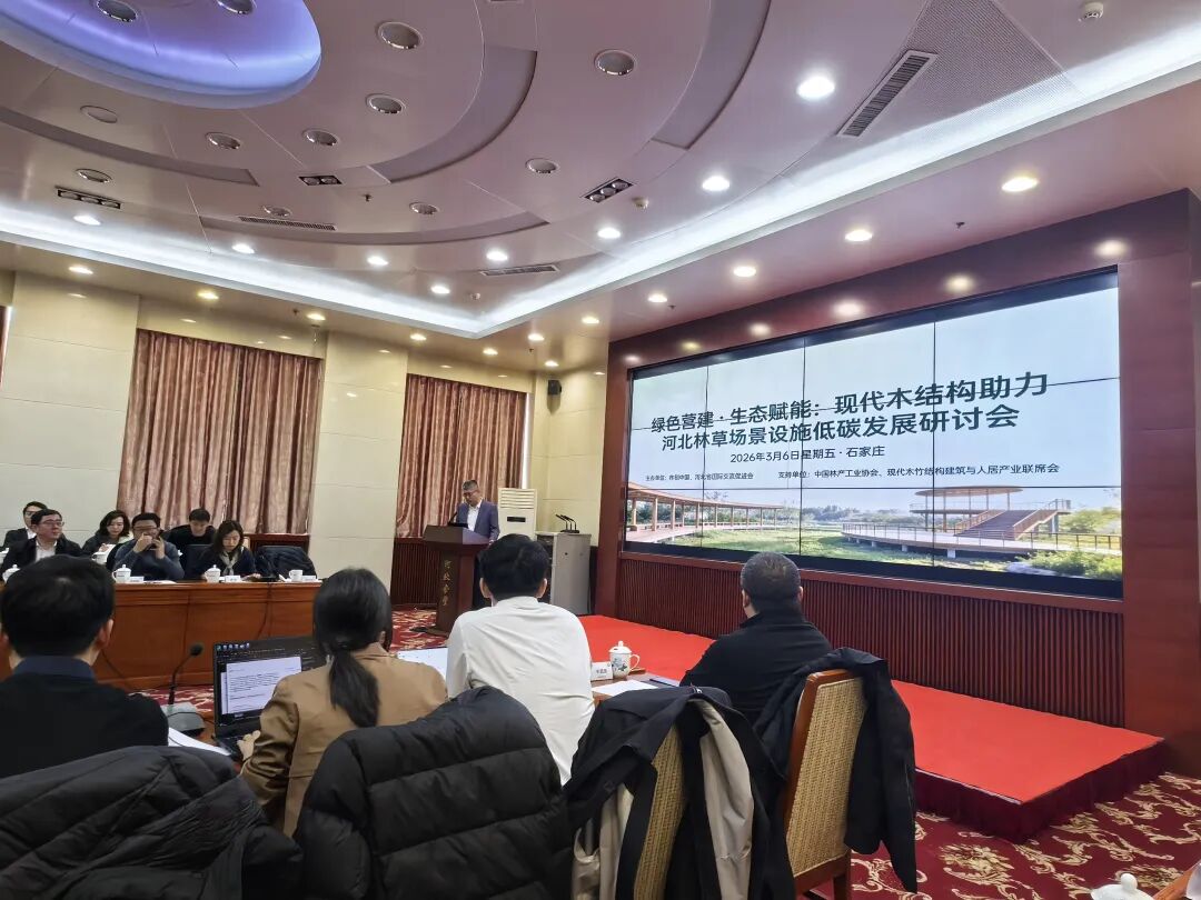 3月6日,协会参加由ink-id="link-1775091153911-0.5702564502597383" style="-webkit-tap-highlight-color: rgba(0, 0, 0, 0); margin: 0px; padding: 0px; outline: 0px; max-width: 100%; box-sizing: border-box !important; overflow-wrap: break-word !important; color: var(--weui-link); cursor: default;">林创中国、河北省国际交流促进会组织召开的“绿色营建﹒生态赋能:ink-id="link-1775091153916-0.4277589584733448" style="-webkit-tap-highlight-color: rgba(0, 0, 0, 0); margin: 0px; padding: 0px; outline: 0px; max-width: 100%; box-sizing: border-box !important; overflow-wrap: break-word !important; color: var(--weui-link); cursor: default;">现代木结构助力河北林草场景设施低碳发展研讨会”。活动围绕加拿大不列颠哥伦比亚省木材故事、林草场景中的现代木结构应用实践探索和我国环境美学角度的林草场景木结构建筑设计等方面进行讲解交流,并在实现拟新建、改扩建林草场景设施项目的绿色生态营建模式开展研讨对话。活动旨为提升河北省林草场景设施绿色低碳营造水平,形成可复制推广模式。