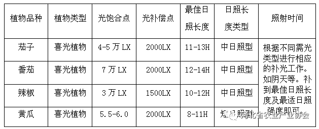 注:阴天多照,晴天少照,冬季多照,夏季少照。苗期多照,花期常规照,结果期多照。根据植物不同光照需求酌情照射,尽力接近其光的饱和点。对于肥料,水份及温度控制等问题,仍然按植物的不同时期进行常规管理,水肥相应的有少许增加。但是时间上要提前,因为补充了光照长度及强度,使得植物的光合作用提高,生长周期缩短,生长期提前,所以时间上有所改变。