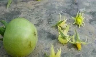这种症状在番茄上最易出现,开始表现为花的萼片数增多,正常的植株萼片数多为6个,而畸形花萼片多为7~10个,结出的果实与正常果不同,除了果实颜色变浅、变小以外,果实开裂或成为多头果,似聚在一起的小果。有人会问畸形果出现时,往往看不到与低温的直接联系。这种情况确实是存在的。研究表明,畸形果在花芽分化期就开始形成了。有时生长素使用不当,也会形成畸形果,不过形成的畸形果仅在脐部出现一个突起,俗称“奶头状果”。因此将畸形果都列为生长素使用不当是不准确的。
