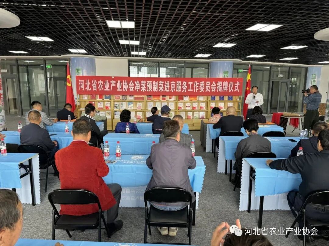 活动现场欣发地农业科技有限公司董事长、净菜预制菜进京服务工作委员会主任苗自然介绍了工委会成立背景及业务范围,庄伟书记宣读了批复文件,孙悦明会长做了总结发言并为净菜预制菜进京服务工作委员会揭牌