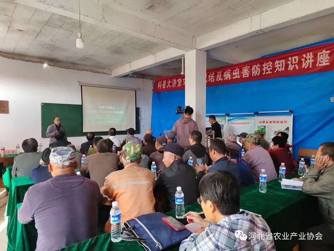 10月25日,由河北省科学技术协会指导,河北省农业产业协会主办,河北省高新技术产业协会、井陉县圆景果品种植专业合作社、河北农晟项目管理咨询有限公司协办的“科普大讲堂苹果栽培及病虫害防控知识讲座”在井陉县圆景有机苹果种植基地成功举办。邀请河北省高新技术产业协会科技成果评价中心主任陈景顺、河北省农科院果树所苹果栽培室徐国良研究员为大家进行授课。河北省农业产业协会会长孙悦明、河北省高新技术产业协会书记韩提有、井陉县圆景合作社负责人杜聚堂及社员代表、周边苹果种植大户、乡村技术能手、高素质农民代表等60余人参加讲座。活动期间,主办方为大家免费发放《苹果栽培及病虫害防控知识手册》及有关资料300余册,同时,通过线上直播方式,对讲座内容进行了现场直播,当天在线观看人数达1000余人次。讲座活动结束后,授课专家到井陉县圆景果品种植专业合作社苹果种植基地进行了现场技术指导。