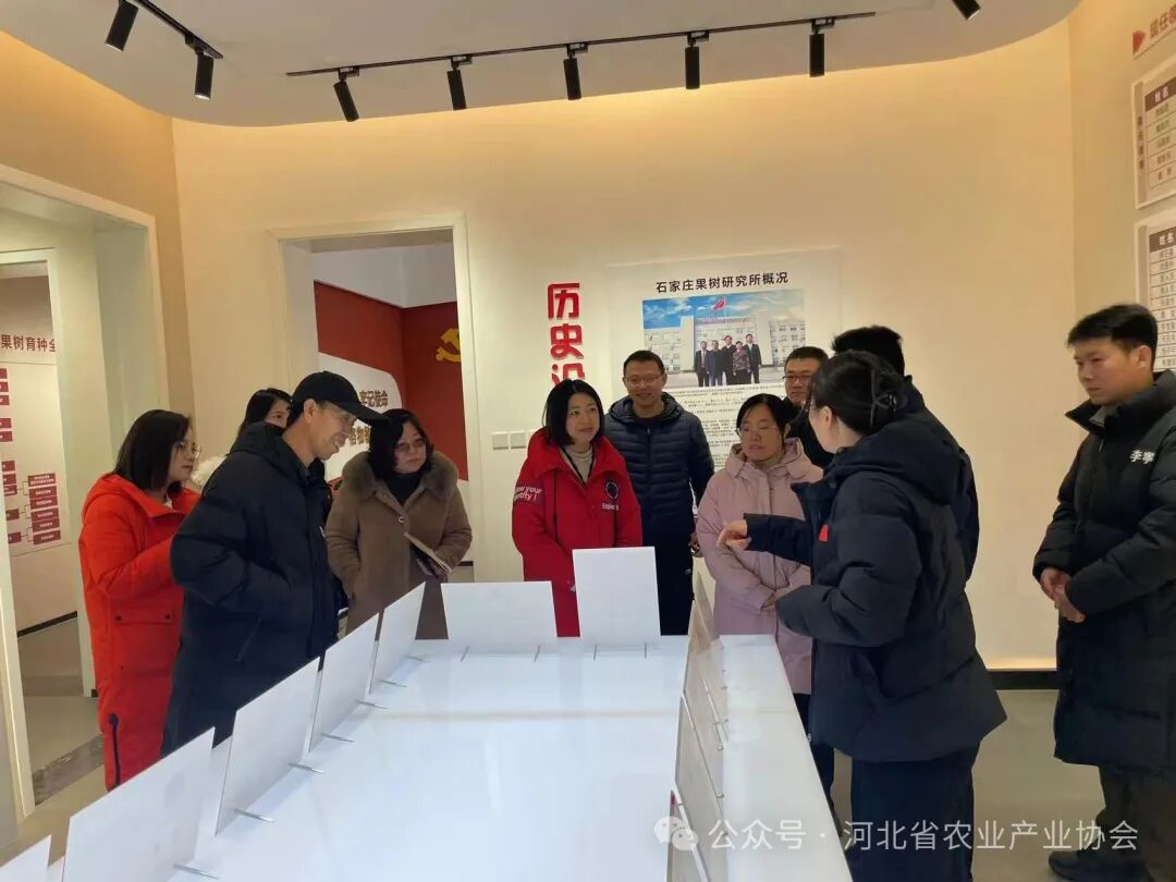 1月17日,庄伟书记带领石家庄财经职业学院人居环境学院李云慧院长一行共5人到河北省农林科学院石家庄果树研究所进行对接交流。果树所杨素苗副所长、所办、苹果栽培室、苹果育种室、苹果植保研究室相关负责人和科研人员参加座谈。大家分别介绍了协会、研究所、学院的情况和优势,围绕产学研结合、实践课程设置及学生实习实践合作、新品种新技术示范推广等方面进行了深入交流并达成一致的合作意向。会议室座谈后,大家一起参观了果树所展厅,学习科学家精神、了解相关专家团队和技术研发应用情况。